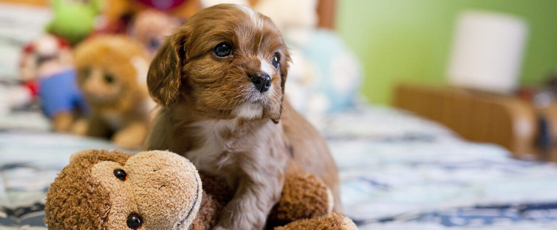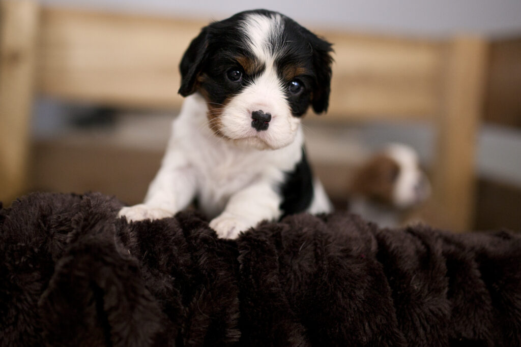 Cavaliers are a small breed dog, usually growing to between 12 – 18 pounds, making them the perfect lap dog. Cavaliers become quite attached to their owners, so with one of these puppies under foot, you’ll never be alone. Even in the bathroom. Their love and attachment for you makes them excellent dogs to train, as they are always willing to do anything to make their owner happy. Their quiet temperament makes them wonderful house mates, even in apartment living. They also play well with other animals and will love any children you have, even if those children have a tendency to accidentally pull fur while they pet them. Cavaliers take it all in stride.